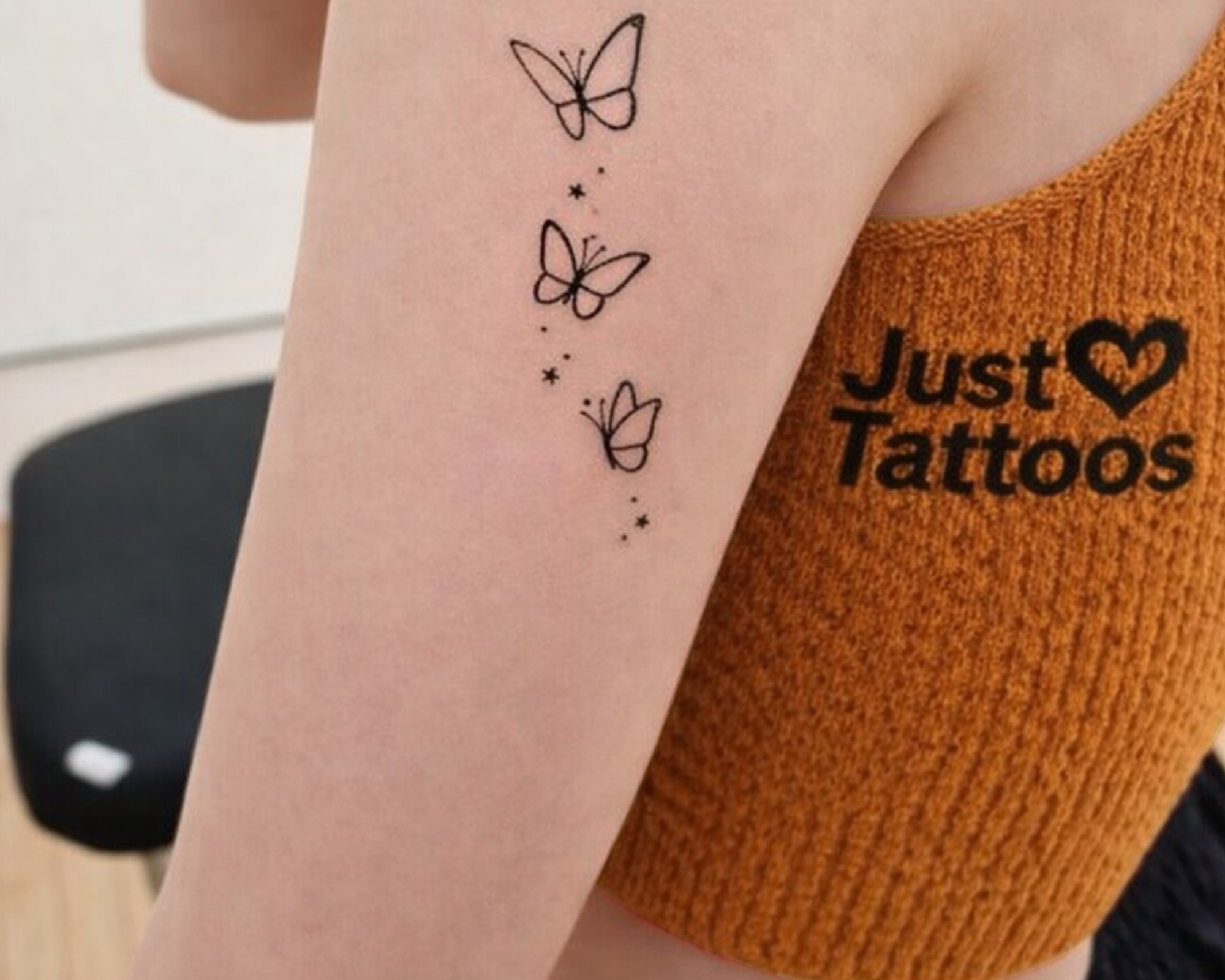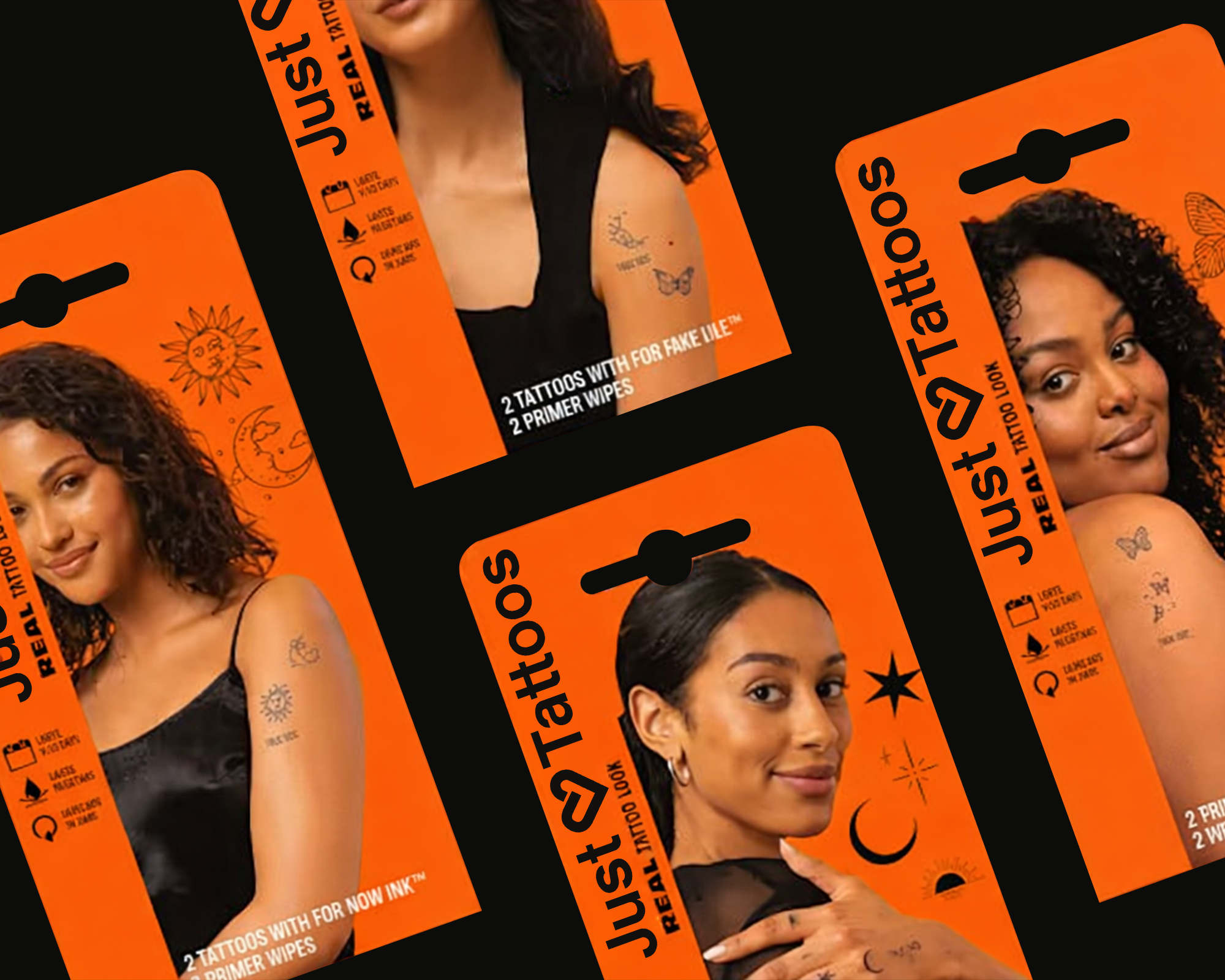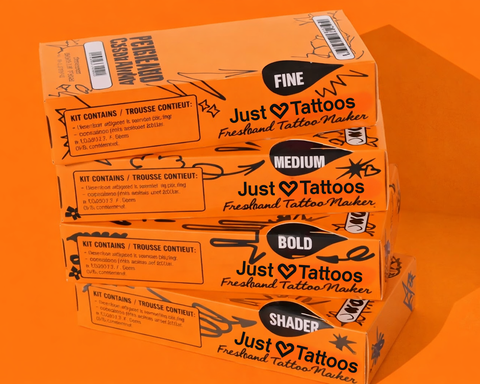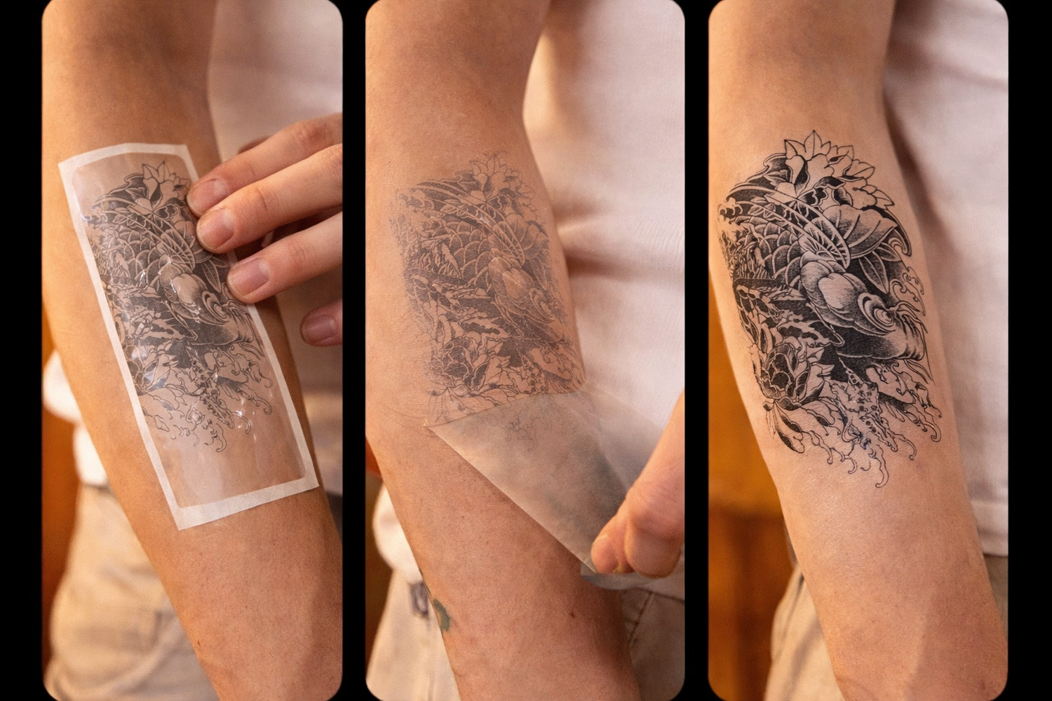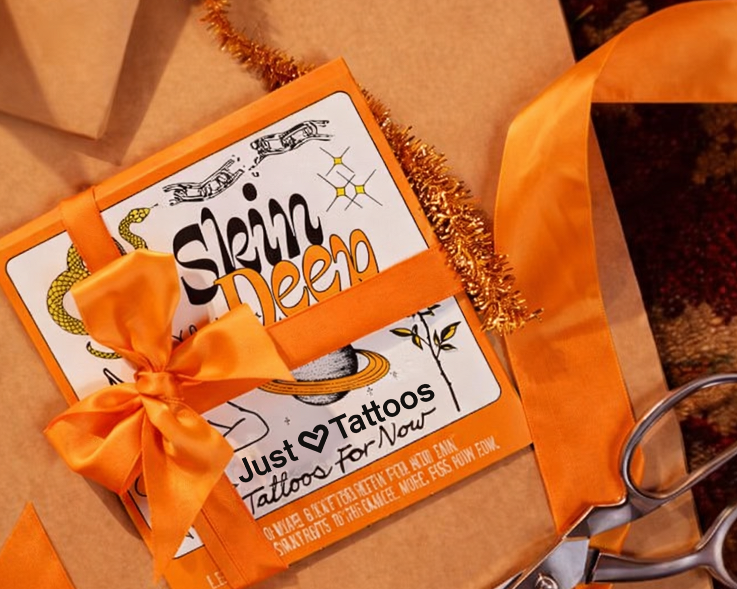 Unlike standard temporary tattoos that sit on top of the skin, Just Tattoos use a skin-reactive ink that absorbs into the upper layer of your skin. This creates a natural, tattoo-like appearance without needles, pain, or long-term commitment.
