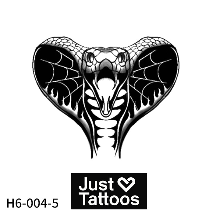 Make a commanding statement with this 2.4 in × 2.4 in masterfully detailed, symmetrical cobra design, which merges bold blackwork aesthetics with deep, ancient symbolism. The illustration features a king cobra poised to strike, its hood fully dilated, creating an imposing and eye-catching piece of art. This art piece is perfect for those who want a design that is as fearless and resilient as they are.